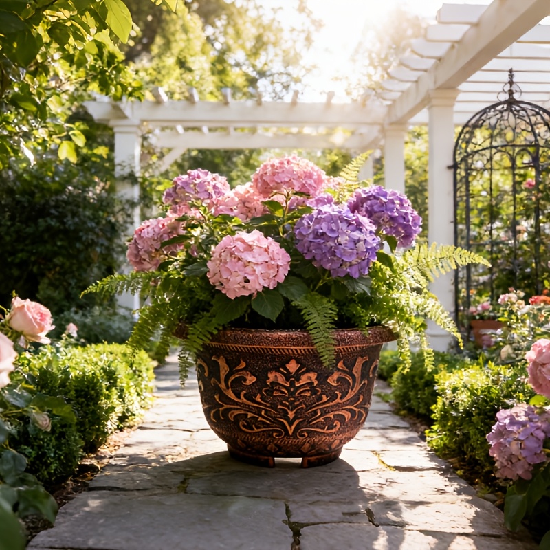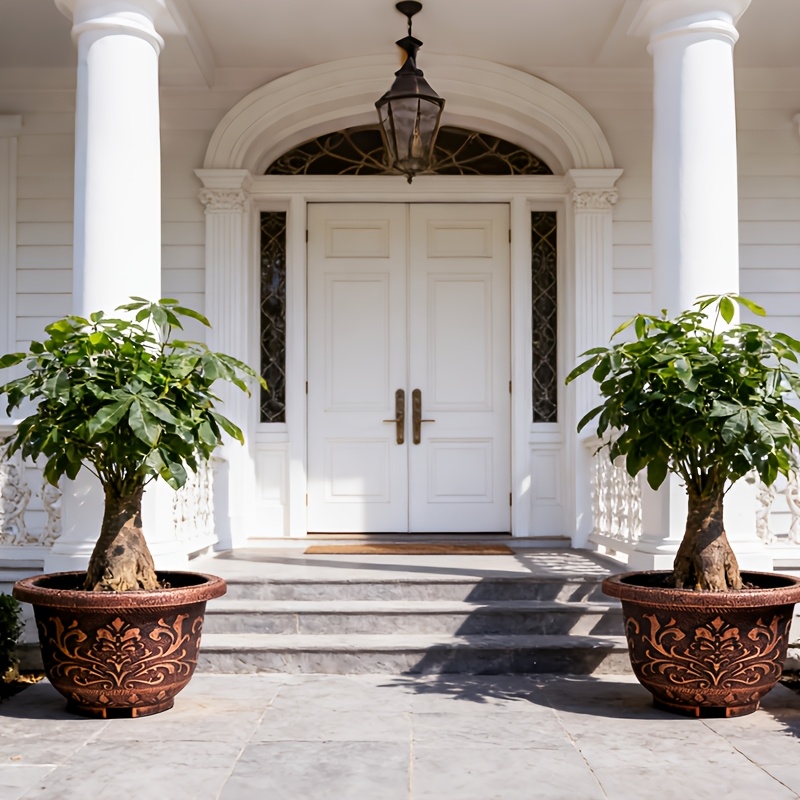 4pcs 11.8in Thickened Resin Planter Pots | 2025 European Design with Ancient Copper\u002FGolden Finish & Drainage Holes | for Indoor\u002FOutdoor Trees, Succulents, Cactus