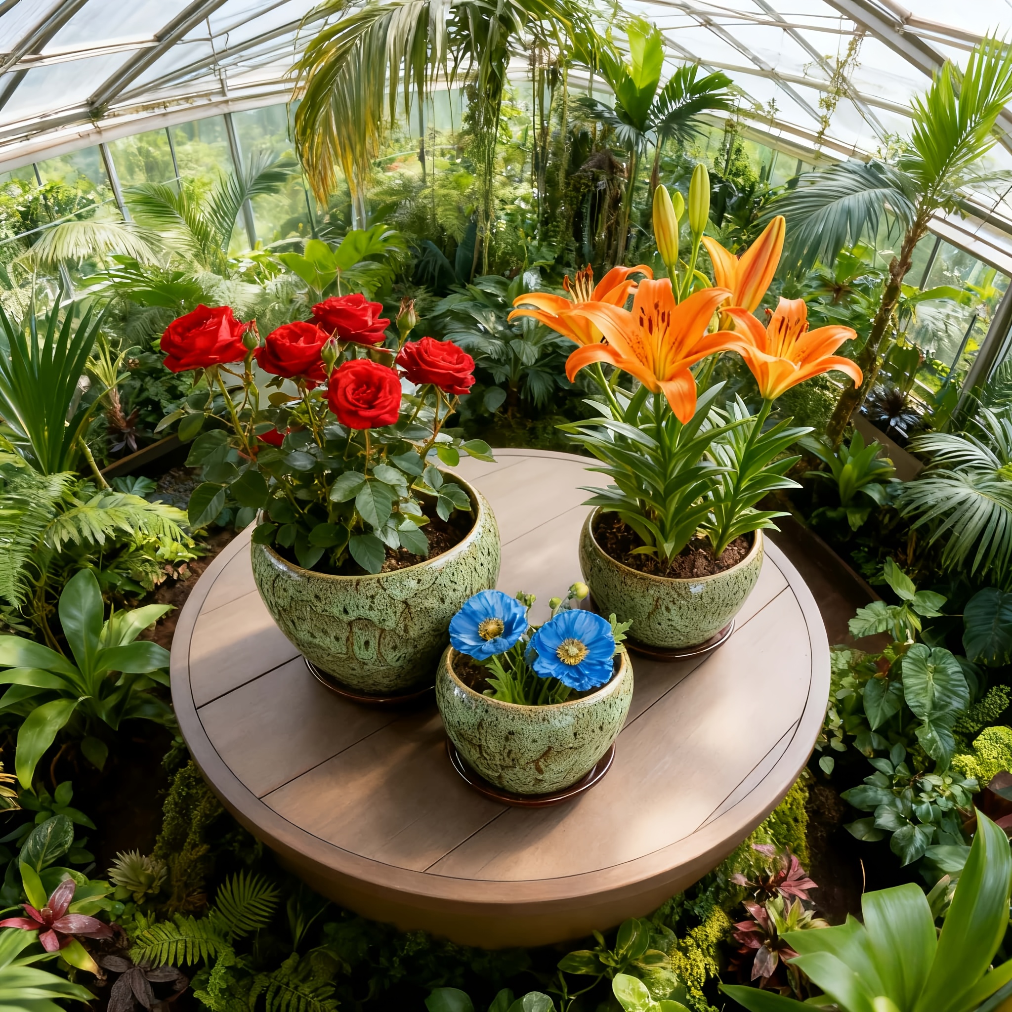 High-end Artisanal Handmade Crackled Moss Glaze Ceramic Flower Pot Set Of Three - Luxury Handcrafted Textured High-end Planter for Foliage And Orchids
